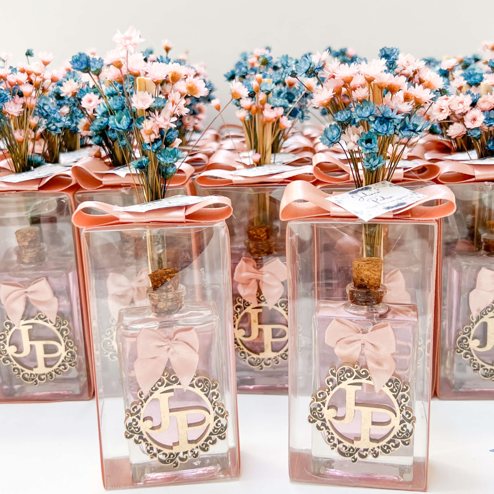 De velas que iluminam com delicadeza a difusores e home sprays que espalham o perfume da sua união, cada item é personalizado de acordo com a sua paleta de cores e identidade visual. Ofereça aos seus convidados um mimo sensorial que os fará recordar cada emoção vivida no altar toda vez que sentirem o perfume no ar.